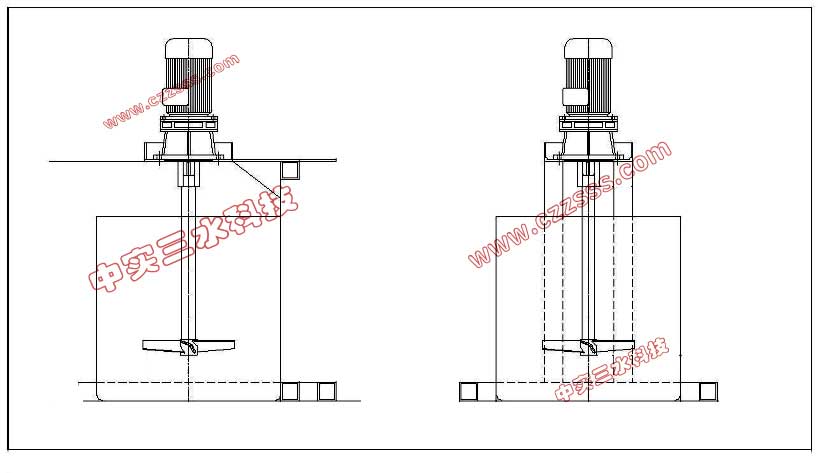今天簽的這個單有點意思,客戶是常州本地一家以絕緣材料為主的機械設備生產的企業,找我們是為其流水線設備上配套一臺非標攪拌機用于化工液體的攪拌,這款非標攪拌機的設計要點是要考慮其安裝的位置,需要將立式攪拌機安裝在一個結構類似于搖臂鉆床那樣的搖臂上,利用搖臂鉆的結構特點可利用3面都可加料,下圖就是我們按照客戶的要求做的方案: